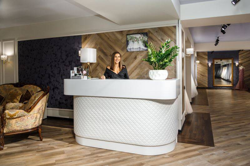 Работа наших мастеров. Дизайн Надежды Булатовой + Укладка кварцвиниловой плитки Art Tile в свадебном салоне «Sovanna».